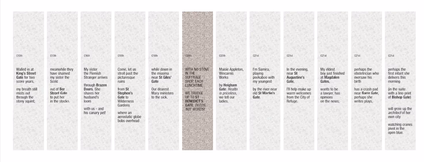 We worked with the National Centre for Writing to do a call out for poets and to select Norwich based Jenny Pagdin to produce a site specific poem which explores the lives of women in Norwich across the ages.
