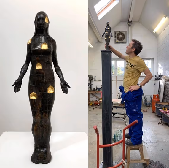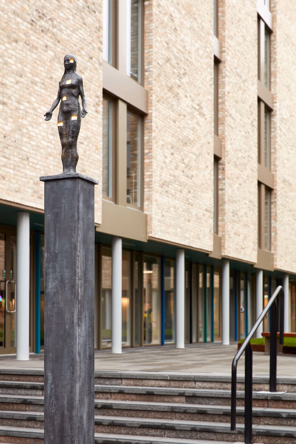 Jenny Pagdins poem inspired a sculptural commission for the development by artist Joseph Hillier which takes the image of a woman with 12 gate images inlayed with gold leaf. The small sculpture is sited above the poem in a new plaza and garden surrounded by the new architecture.