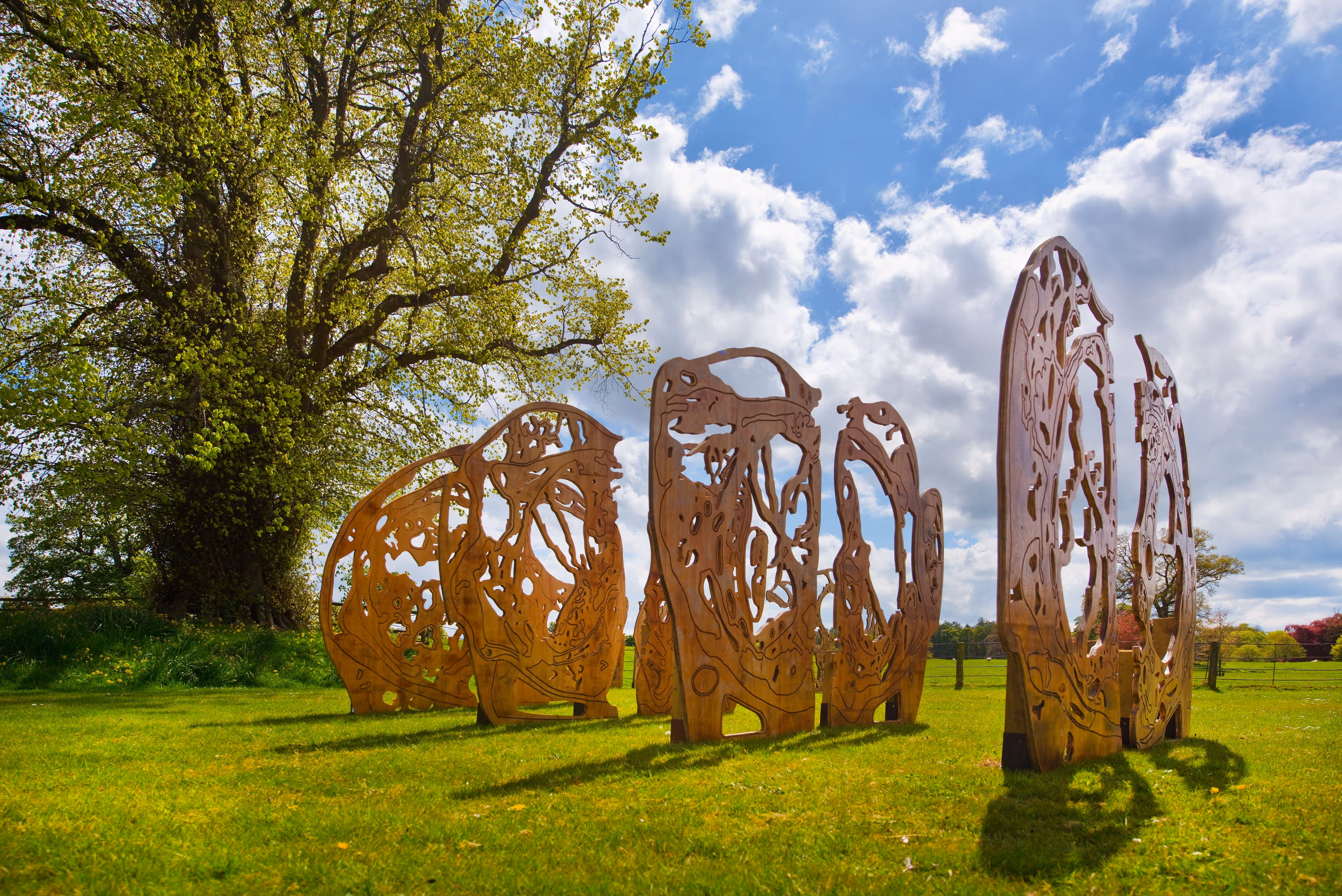 The 2019 programme at Cheeseburn saw an increasingly ambitious use of spaces and buildings for installations, including Erin Dickinson's 3D printed chandelier welcoming visitors to the stables, Briggita Jurack's ceramic monkeys across the formal gardens and Ayako Tanis extraordinary collection of glass ships in bottles filling the pews in the Chapel.