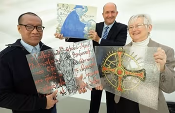 I worked with property developers to develop the artists brief and shortlist and to commission American artist Jeffrey Sarmiento, who was Reader in Glass at the University of Sunderland to create two permanent glass artworks by the River Wear near the new HM Passport Offices in Durham City. The illuminated glass sculpture entitled Confluence uses local imagery to chart Durham’s history and the use of water power on the riverside from the 11th century up to the present day and the new Archimedean screw at Freemans Reach.