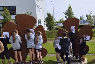Engagement with young people and schools projects are an increasing focus as the project matures and we have worked with local schools to produced poetry films and hoardings and currently we are working on a new arts activity book designed by Paulina Malowaniec to encourage children to explore and engage with the sculptures across Edinburgh Park.