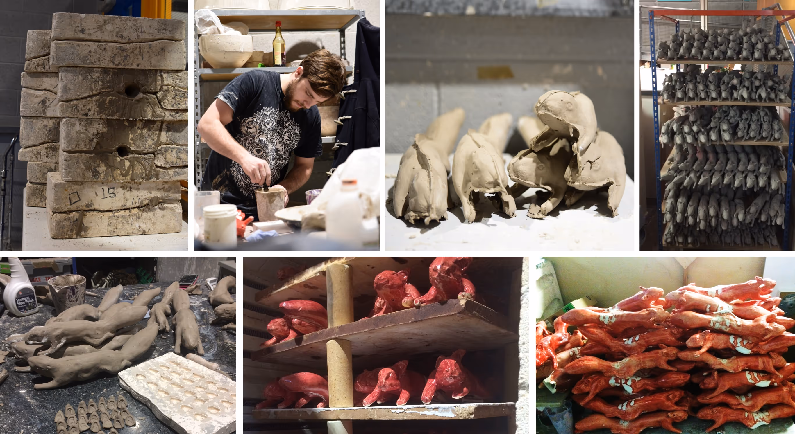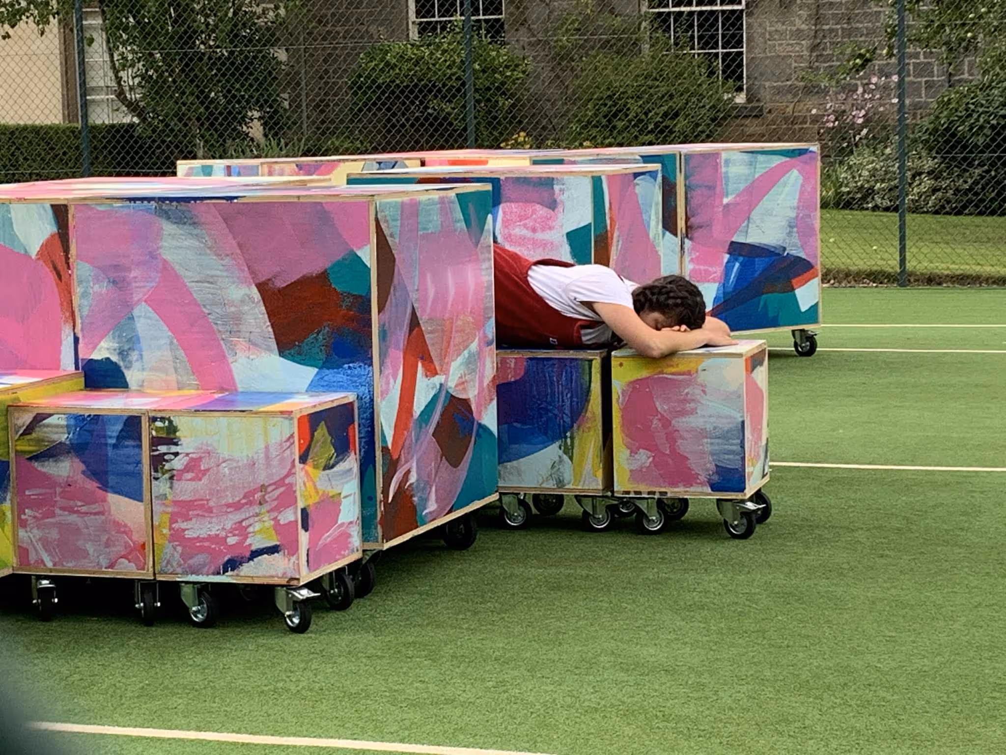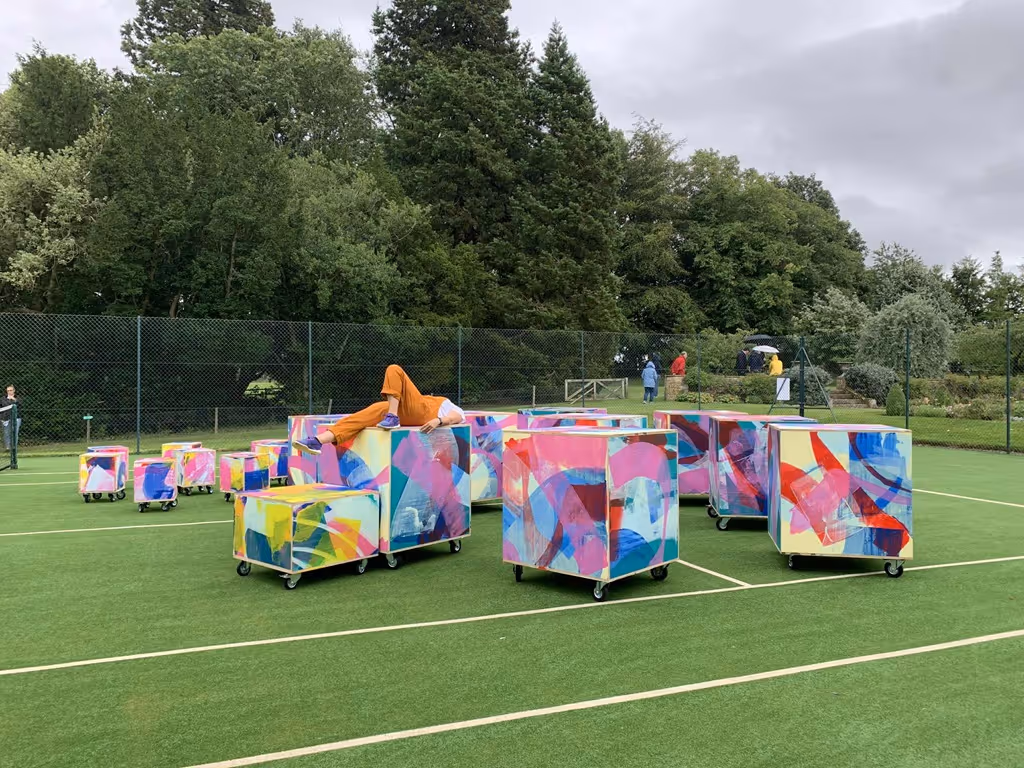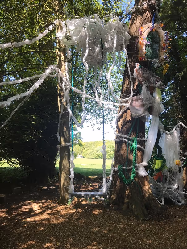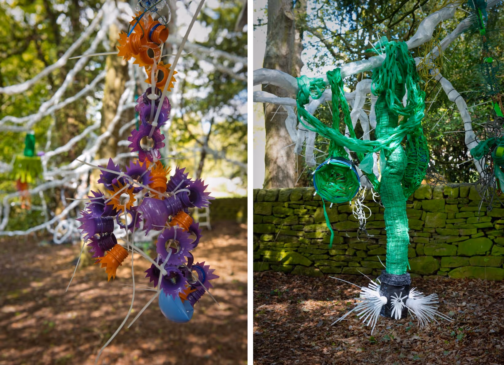 The chronology of winning artists and proposals included Dan Gough's Scurry made of 2000 cast ceramic squirrels in 2017; Peter Hanmer's installation of dystopian miniature figures for Platos Lair in 2018, Clare Townley's installation of recycled plastic in the woodlands called Nostalgia De La Boue in 2019; Bethan Williams mobile painted cubes called Beatrice and her friends in 2020 and Laurie Powell's Library of Ninevah made from hand dug clay from 8 Northumbrian rivers; and in 2021 we supported 5 further artists to realise their proposals for the project retrospective including Jed Buttress, Rebecca Marrs, Cameron Lings, Maximiliane Ley and Jenny McNamara.