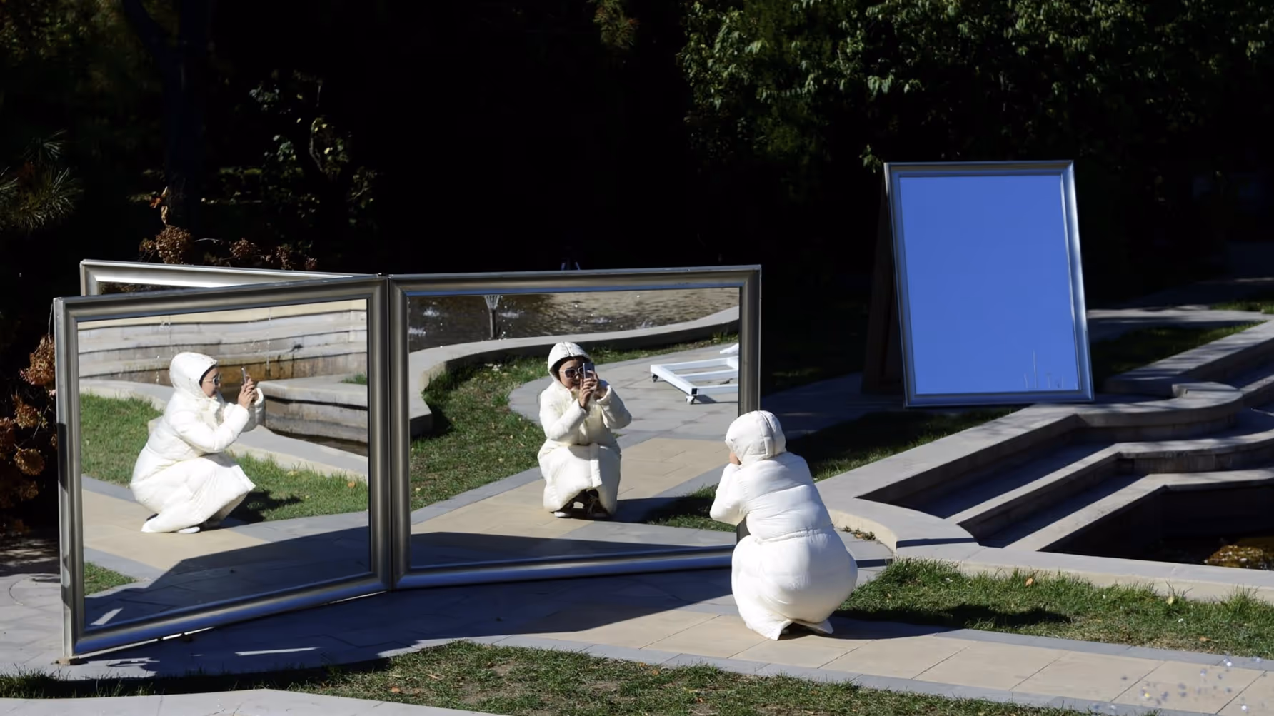 The artist had made a prolific body of work and her studio included many mirrors and intimate tableaux of dolls, mannequins and costume constructions -the installation at Fortune Mansion sought to expand the atmospheric world of the studio to become an exploration of the building and gardens with multiple narratives and identities for visitors to discover as the installations and performances evolved.