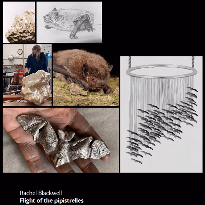 Selected artists projects in the second year included a triptych of embroideries made from lost property clothing by fashion designer Jacob Goff, a suspended installation of cast pewter Pipestrell bats by sculptor Rachel Blackwell and a sound piece by actor and director Wambui Hardcastle which imagined life at Seaton Delaval hundreds of years into the future.