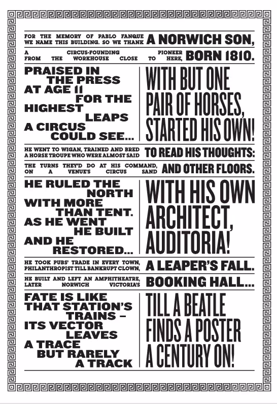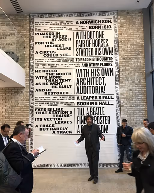 I became aware of Pablo Fanques story and that the Beatles had played on the site when it was a music hall during my research in developing the arts strategy for Alumnos new building. The commissioned artworks include a large scale poem by Ira Lightman and a working 'zeotrope' based on Pablo Fanque circus skills.