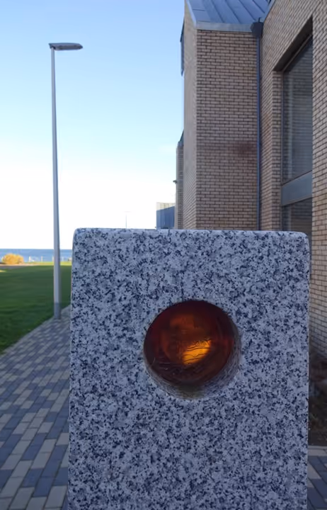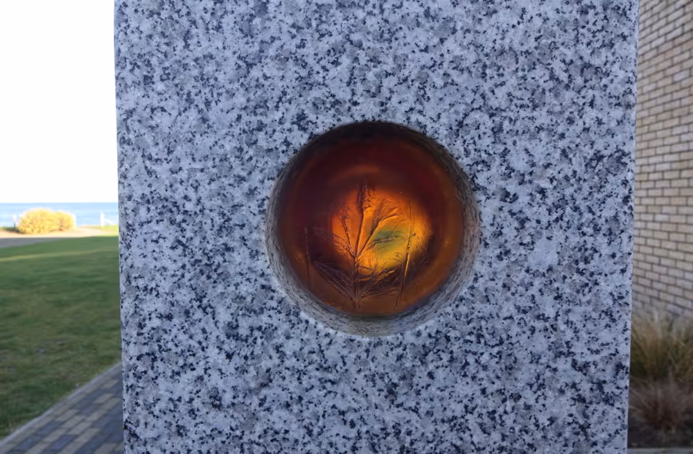 In addition we commissioned glass artist Effie Burns to make a series of cast glass lenses set into granite finger posts extending the photography theme.