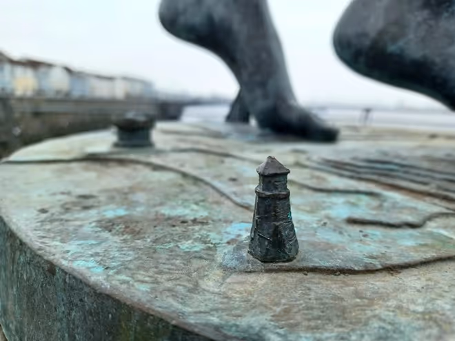 I worked with South Tyneside Council to develop the artists brief and organised a design competition which was won by artist Irene Brown. Her figurative bronze sculpture Spirit of South Shields is redolent of ships figureheads and the figure holds a collier ship in her arms symbolising the areas ship building and seafaring heritage. The sculpture stands on a plinth where well known buildings from the area are also represented. The sculpture has been used by the local authority as an emblematic image for the town.