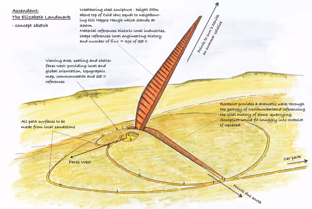 I worked with Lord Devonport in 2018 to develop his concept into an artists brief and I then organised an invited design competition which led to the selection of artist Simon Hitchens and his ambitious proposal for the Elizabeth Landmark which is intended as a permanent 55m tall artwork exploring the life of Queen Elizabeth and the Commonwealth. The project is the long-term vision of Lord Devonport who has gifted the land at Cold Law in Northumberland for the project.